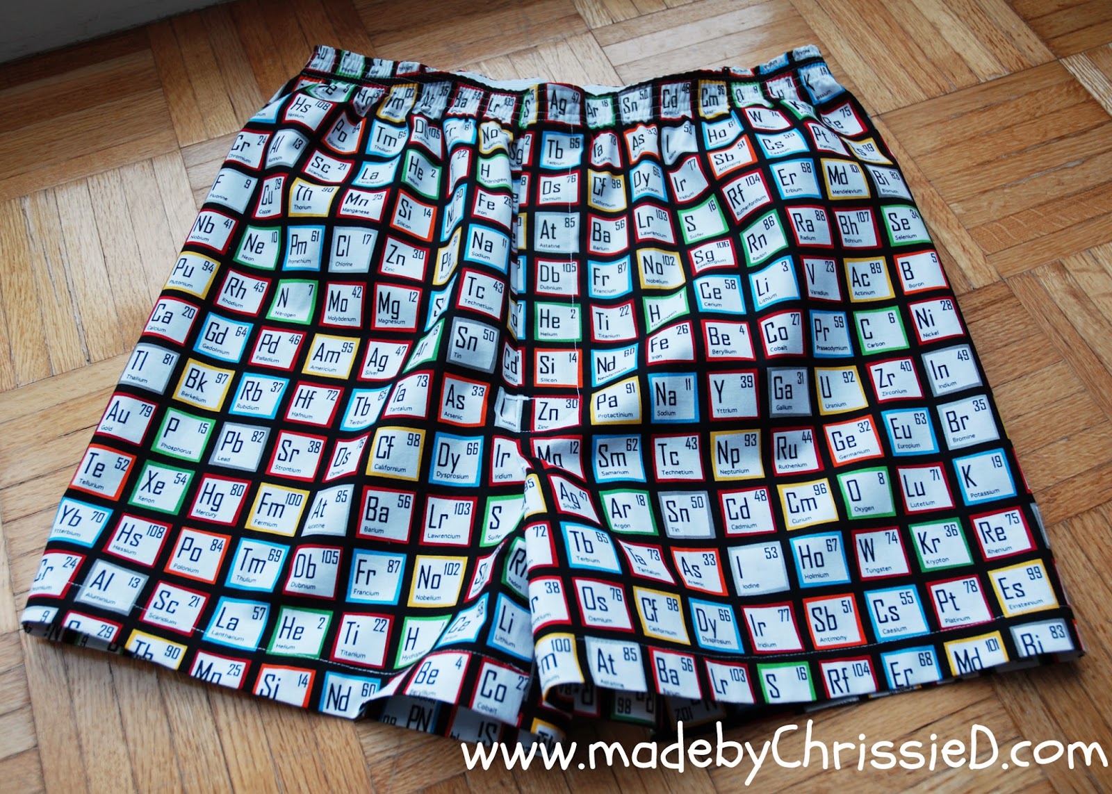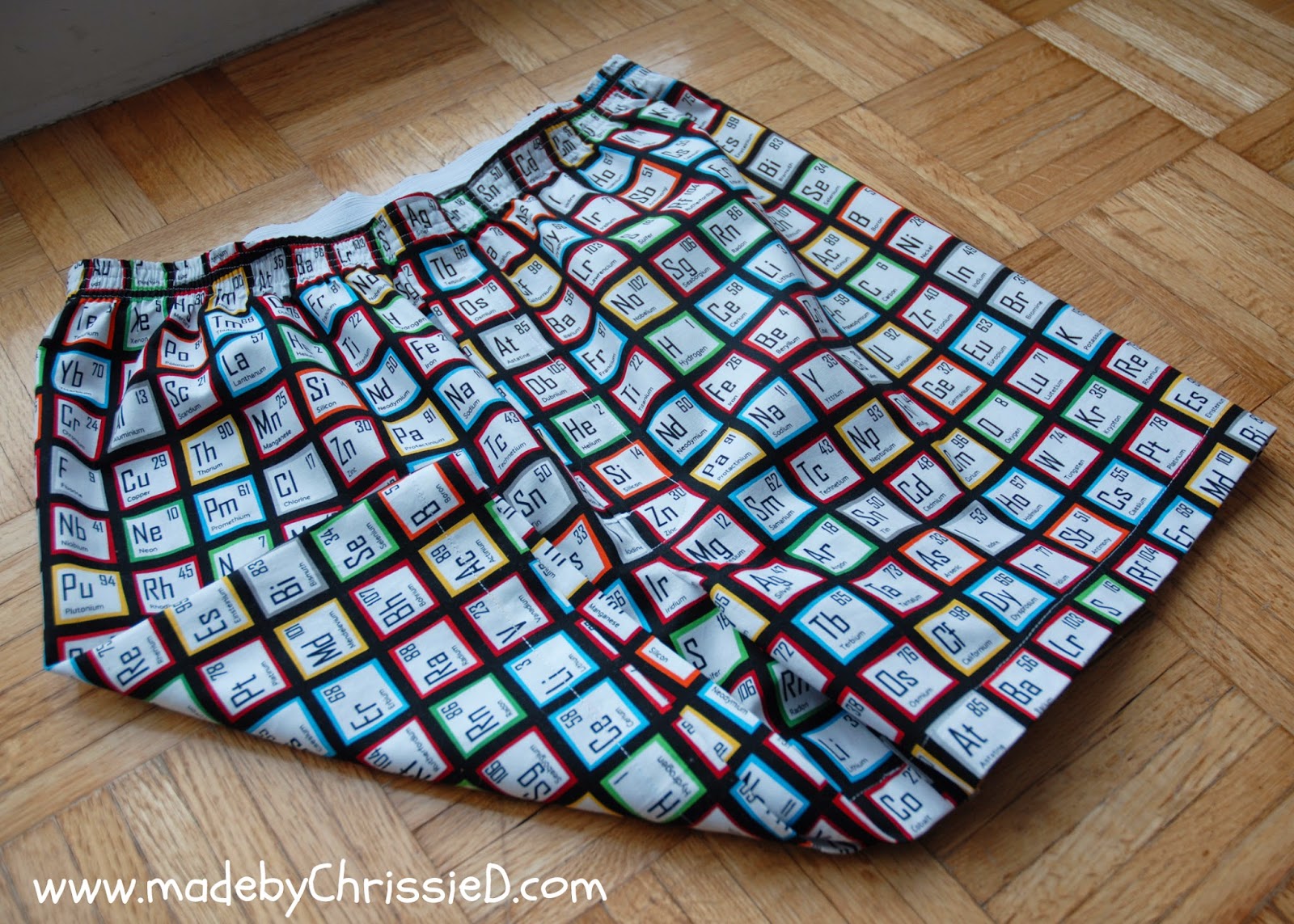 As soon as my husband saw the fabric though he said "Sheldon wouldn't wear those" referring to The Big Bang Theory character, Sheldon Cooper. Apparently, the periodic table on the fabric isn't in the right order - well personally I wouldn't have a clue!!!