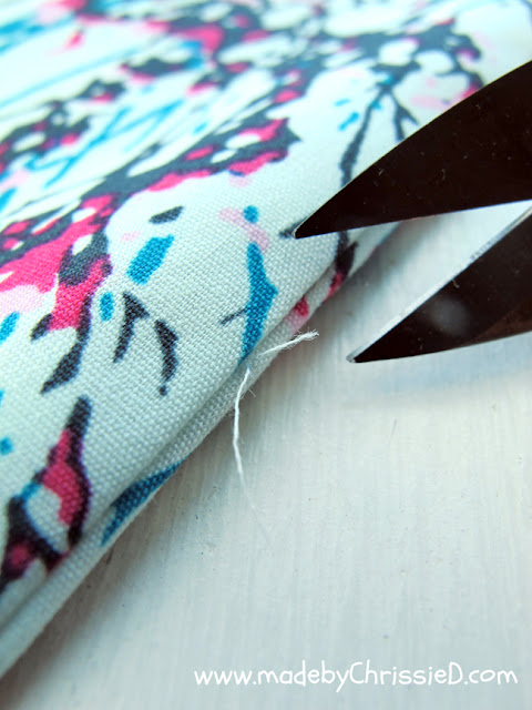 Threads sticking out from seam edges must be removed at this stage or you’ll have a big external seam clean up job on your hands when pillowcase is finished!