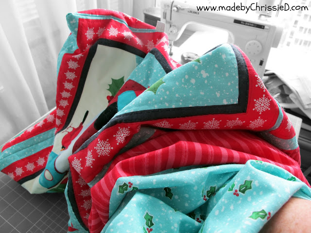 Below are instructions to make a Santa Sack from the Happy Holidays Snowmen fabric collection by Michele D'Amore for Benartex Fabrics but you can make my Santa Sack using any Christmas fabric and to any size you want.  To make your own measurements cut 4 pieces of fabric to your desired size (don't forget to add 1/2" seam allowance to the length and width) and 2 pieces of batting cut to the same size, you'll also need 4 border fabrics cut 6-1/2" x the width of your main fabric.  Follow the tute instructions as normal and quilt and/embellish to suit.