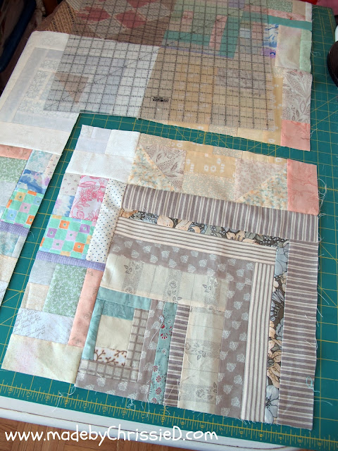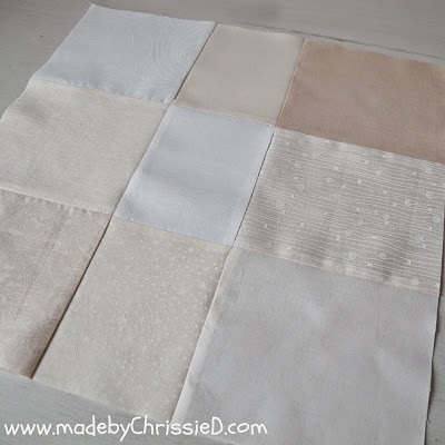 then I sewed them together again into a new quilt top and immediately cut that up too into 8" blocks - I had to add a small strip of cream to cut the last 8" block to size.