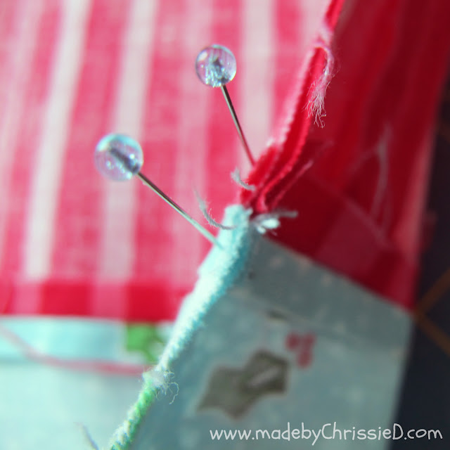 Once two side seams are pinned hold the sack up along the top open edge and sack and lining should lie flat one inside the other.  Continue to pin or Clover Clip around the full top edge.