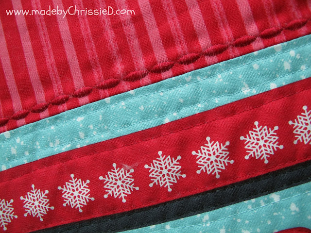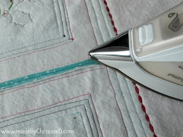 When all the quilting is done I like to add a decorative stitch along the bottom edge of the top border to hold the border fabric firmly in place.
