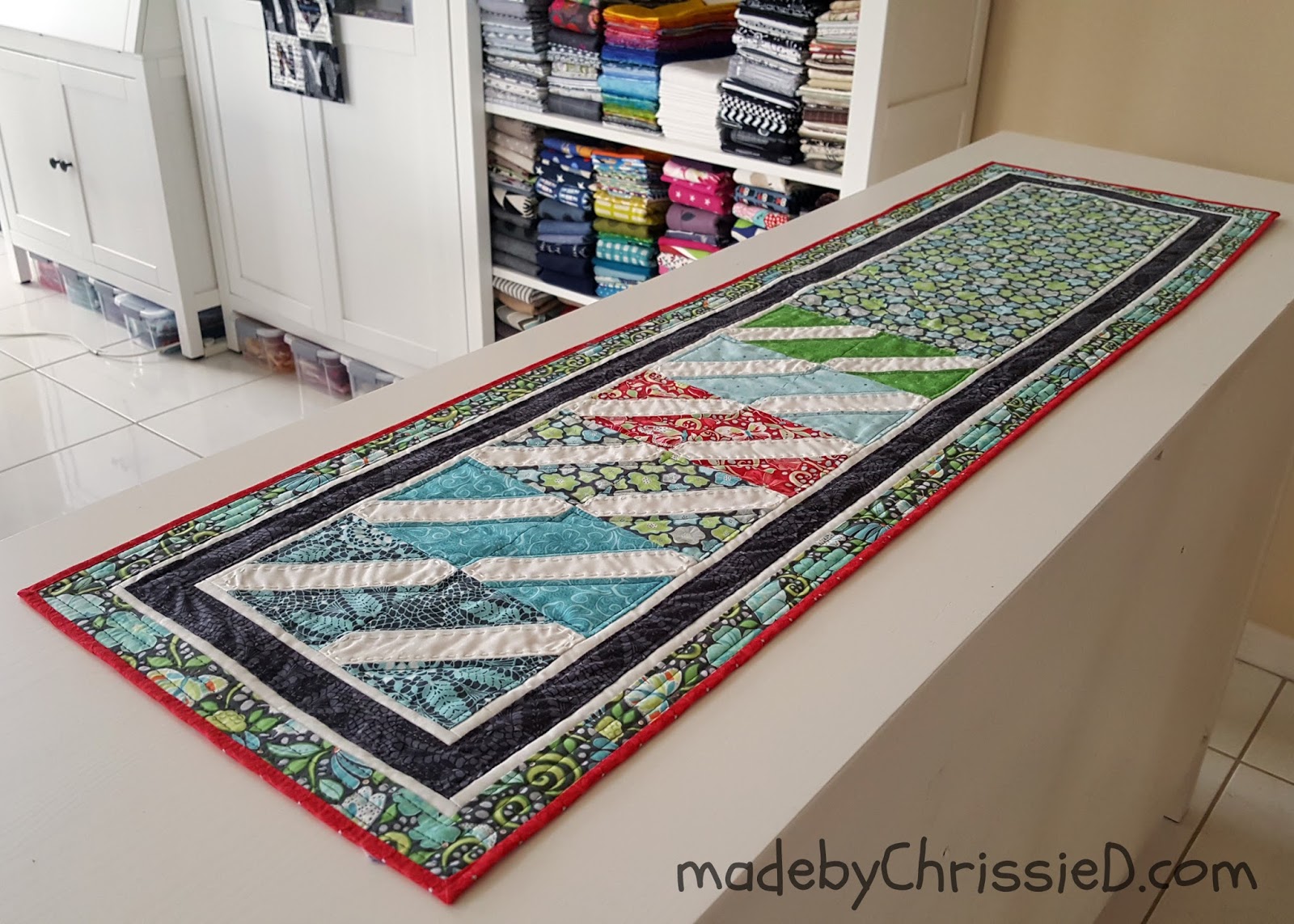 I've bound the runner in red, using my 1/4" Single Fold Binding Technique - click below for my tute.